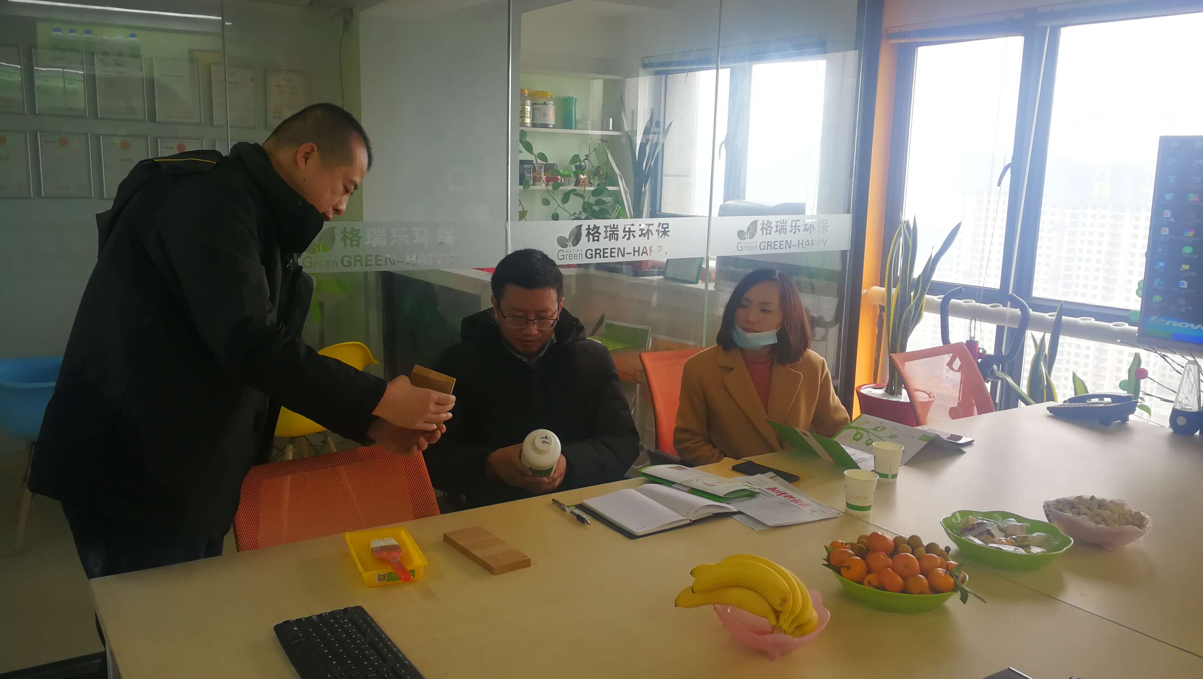 公司总经理王贵军对来访人员热情招待,介绍格瑞乐环保前端科技光触媒系列科技产品的运用以及公司获得的十二项专利证书,带领参观经中科院检测通过的绿快系列产品让来访人员切身感受安全、绿色的科技产品。通过公司负责人对产品的详细介绍,来访人员对格瑞乐环保产品产生极大兴趣给予肯定和支持。谈及疫情影响,公司总经理王贵军表示,虽然疫情是一场大挑战但也是一场考验,自疫情后期我们仍以空气质量品质为己任,做好本职工作、践行工匠精神、不断钻研新科技,抓住机遇实现逆风翻盘。